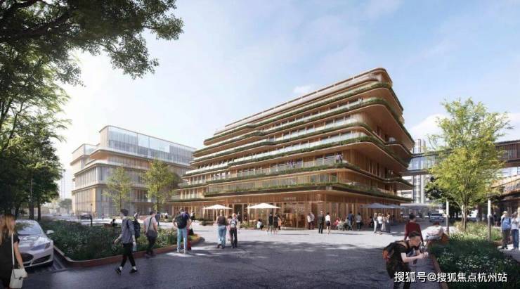 商业中心:紧邻养老中心西侧,建筑退台设计,种植丰富垂直绿化。