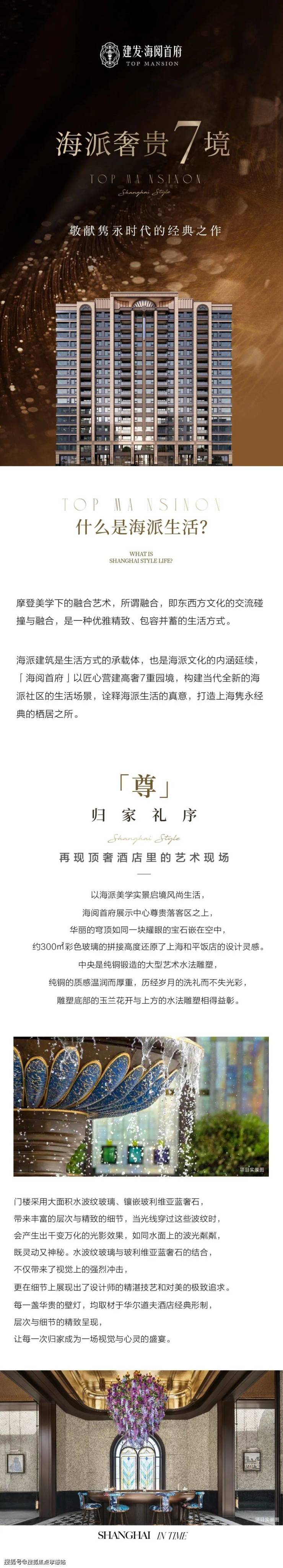 建发海阅首府售楼处电话:400-8080-420☎大家可以感受一下以上来自于实拍图的品质和气质,奢石的大量运用,重工工艺,极尽顶奢海派风格!