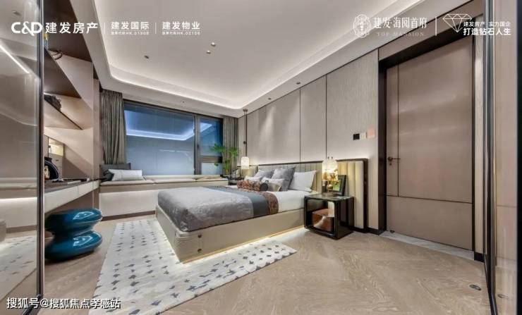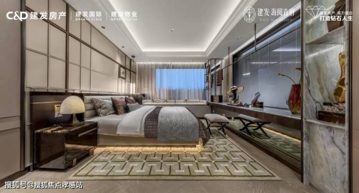 建发海阅首府售楼处电话:400-8080-420☎最奢华的当属超大面积的主卧套房!面宽达到了3.5米!并采用了最为实用的三段式设计!超大衣帽储物空间、独立卫浴,加上飘窗空间,卧室进深达到了约5米!