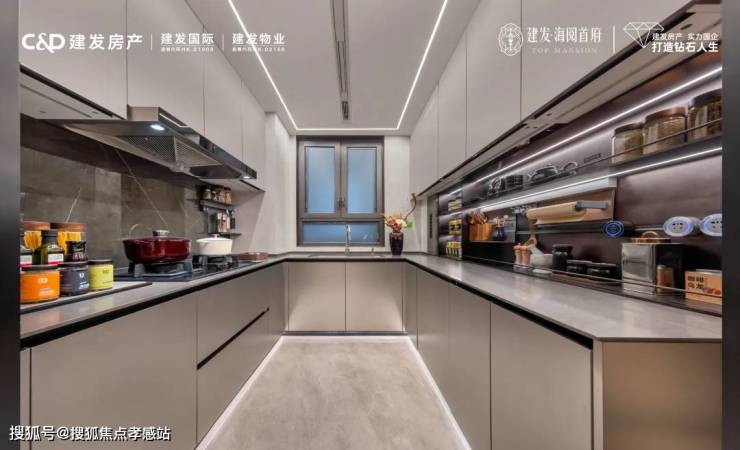 建发海阅首府售楼处电话:400-8080-420☎厨房是许多业主的最爱,最为实用的U形设计,还在餐厅额外设计了一个单独操作的空间!既可以作为早餐吧,又能在派对时充当自助餐台,大大延展了厨房的实用性和社交属性!