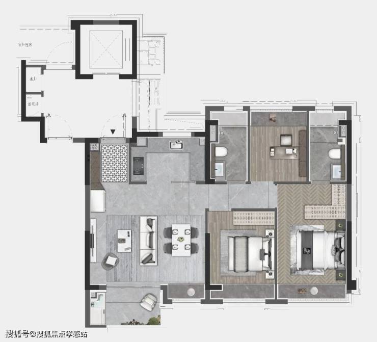 建发海阅首府售楼处电话:400-8080-420☎建面约100㎡户型则是极为经典的飞机户型!也是五脏俱全!值得推荐!