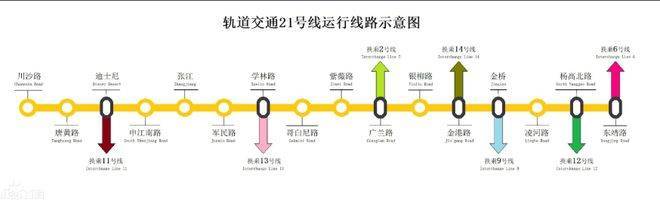 21号线申江南路站(直线距离约一公里,2022年已开工)在规划时主要参考原迪士尼线线位,串联起吴淞国际邮轮码头,吴淞客运中心、高桥、外高桥自贸区、金桥、张江、康桥、迪士尼、上海东站、浦东国际机场等板块,接轨多条地铁南北路线。(数据来源:百度百科)