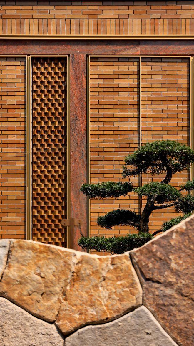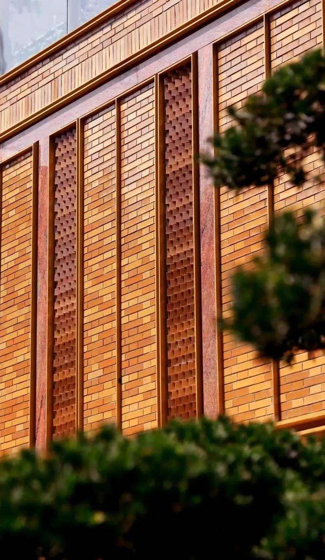 更令人动容的是对 “材料记忆” 的唤醒。建筑外立面采用的窑变红砖,并非简单的仿古建材,而是在传统梅花钉拼砌工艺基础上,创新融入了 8 种拼砌手法。