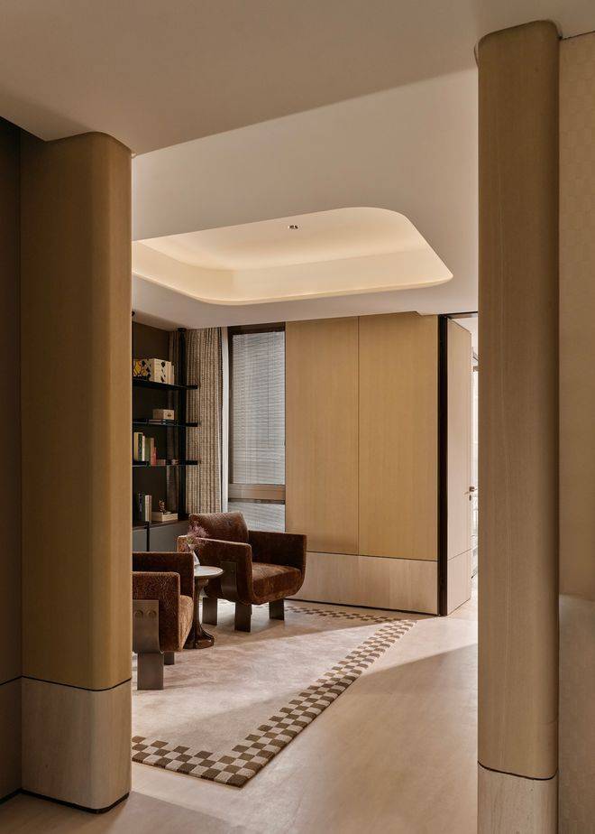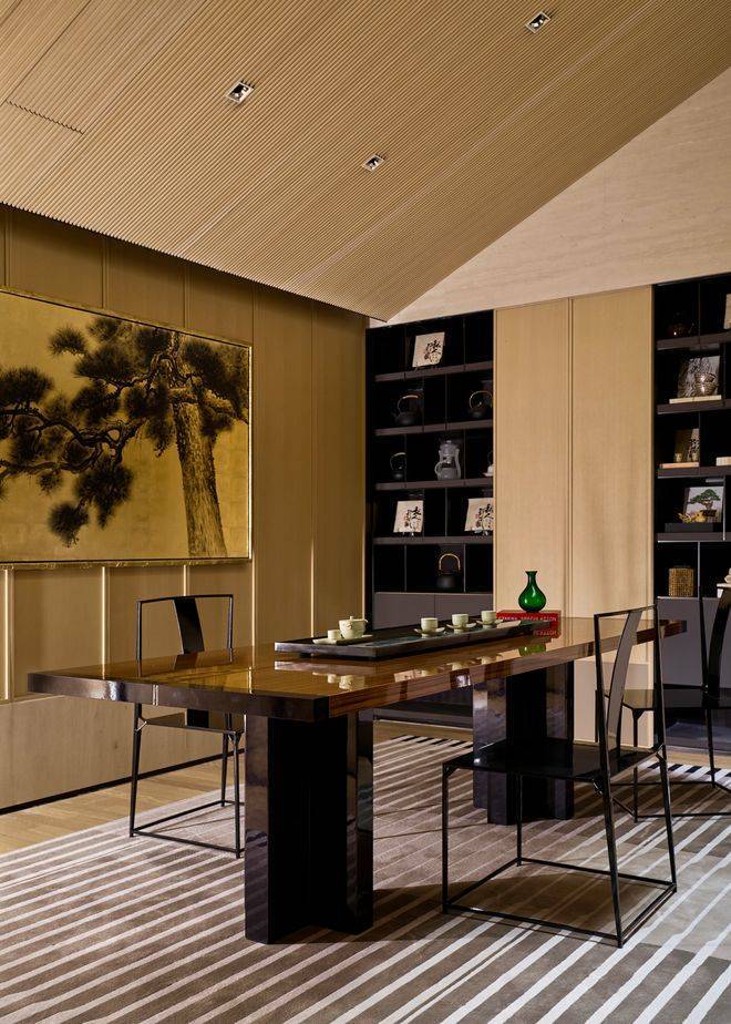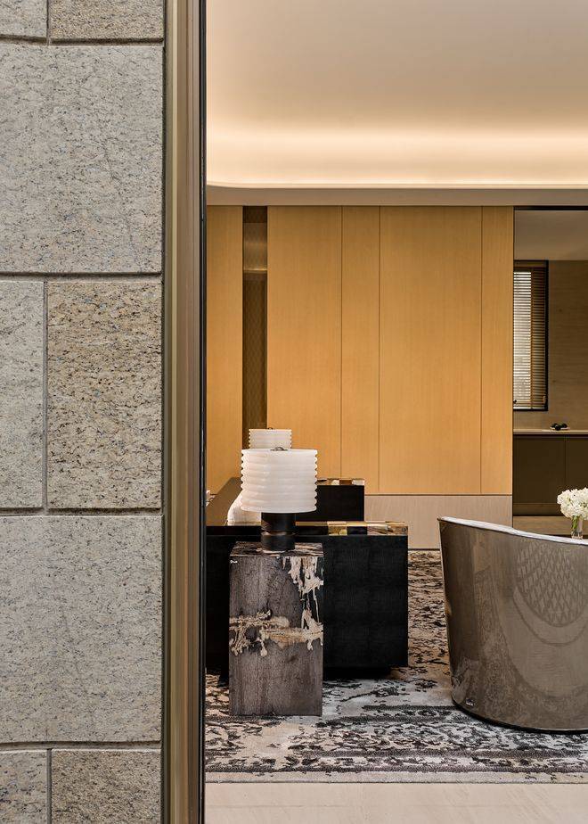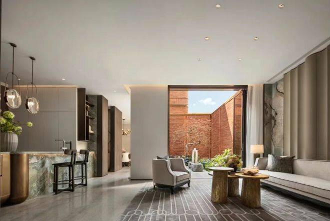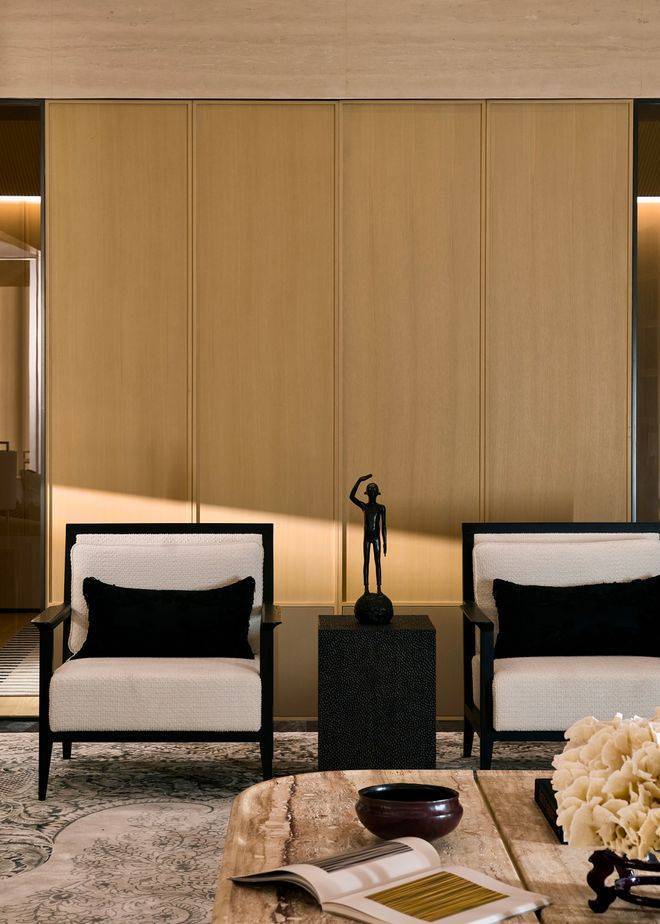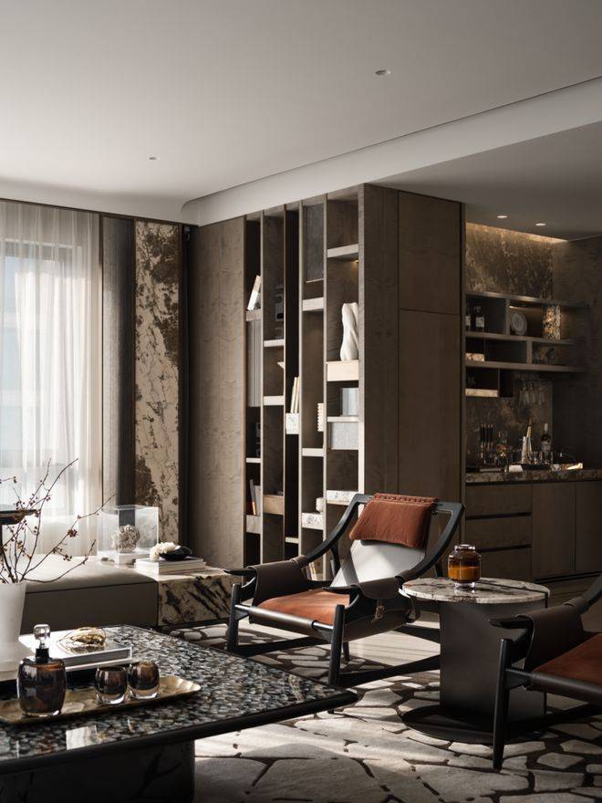 空间设计始终围绕 “仪式感” 与 “松弛感” 的平衡展开。无论是公共区域的会所、艺廊,还是私人领域的样板间,都在 “规制” 与 “自在” 之间,找到了恰到好处的尺度。