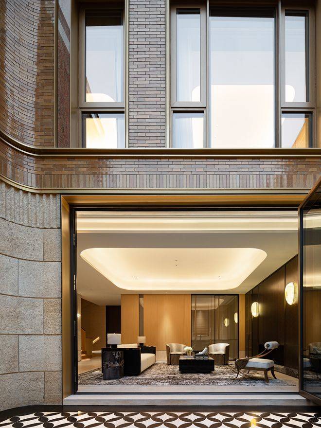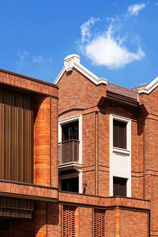 走在别墅区的街巷里,脚下的红砖铺就的路径、转角处的绿植掩映,会让人想起老上海石库门的烟火气,但抬头望见的 270 度环幕玻璃、金属线条勾勒的窗楣,又清晰地标注着 “当下” 的设计语言。