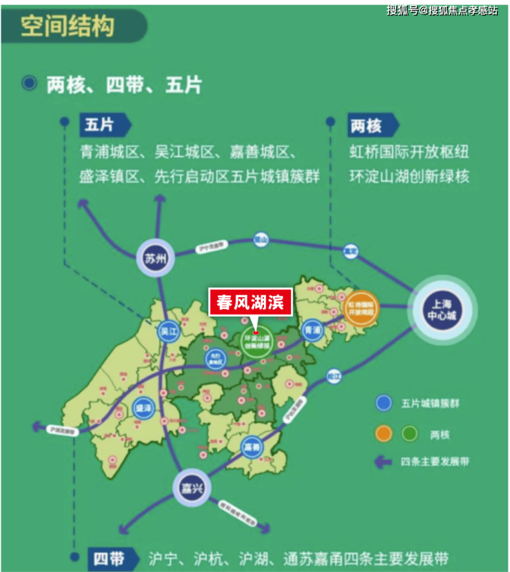 而春风湖滨则位于“长三角生态绿色一体化发展示范区先行启动区”。