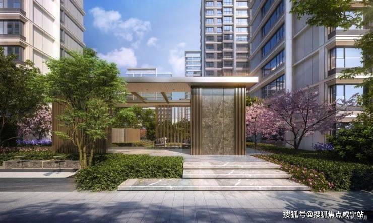 【北区入口】尺度大气的现代风格门头,入口展现艺术水苑、叠水瀑布以及层级绿化,彰显归家仪式感。