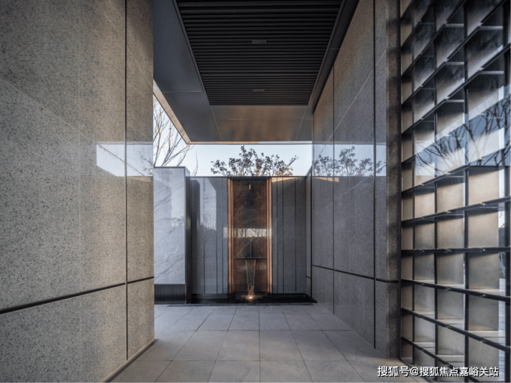 第四重:后场廊园两侧采用金属格栅与景墙融合打造,于细微处见真章、低调处见奢华;