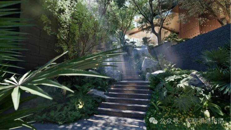 园林首创近7米垂直高差的“立体峡谷景观”,结合5-8.3米全架空层,形成14米高差的全龄剧场,将山川溪谷引入都市核心