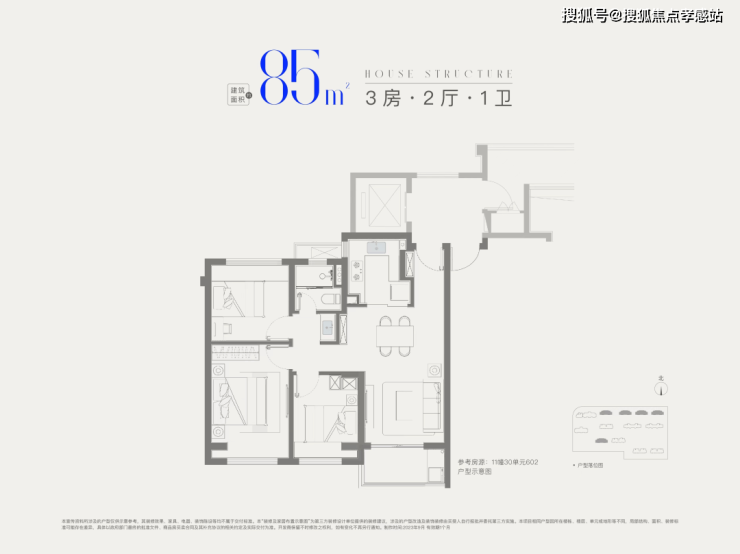 【星耀翠湾】售楼处电话:400-885-5420✨✨建面约85㎡3房1卫,做到三开间朝南+全卧室带飘窗+卫生间干湿分离+动静分离,非常紧凑的小3房。