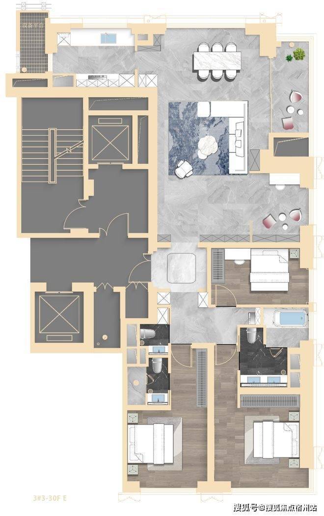 5开间朝南,4卧朝南,双卧套房设计,南向超大采光面,让阳光和清风肆意流淌;