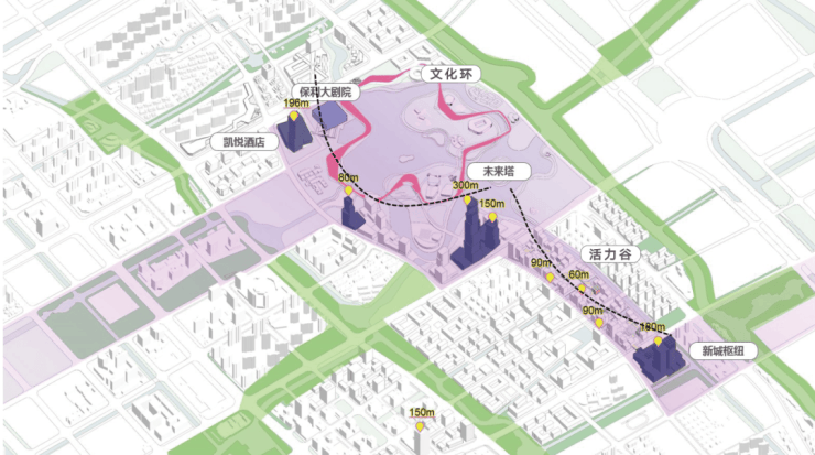 未来塔:位于CAZ的正中央,建成约300米,将成为嘉定甚至是上海西北第一高楼,是真正的C位地标