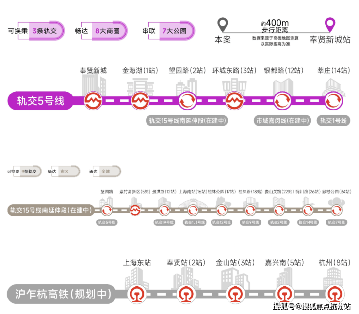 交通方面:项目多轨交环绕,5号线、15号线南延伸段(在建中)、市域嘉闵线南延伸段(规划中)、沪乍杭高铁(规划中)及南枫线(在建中)