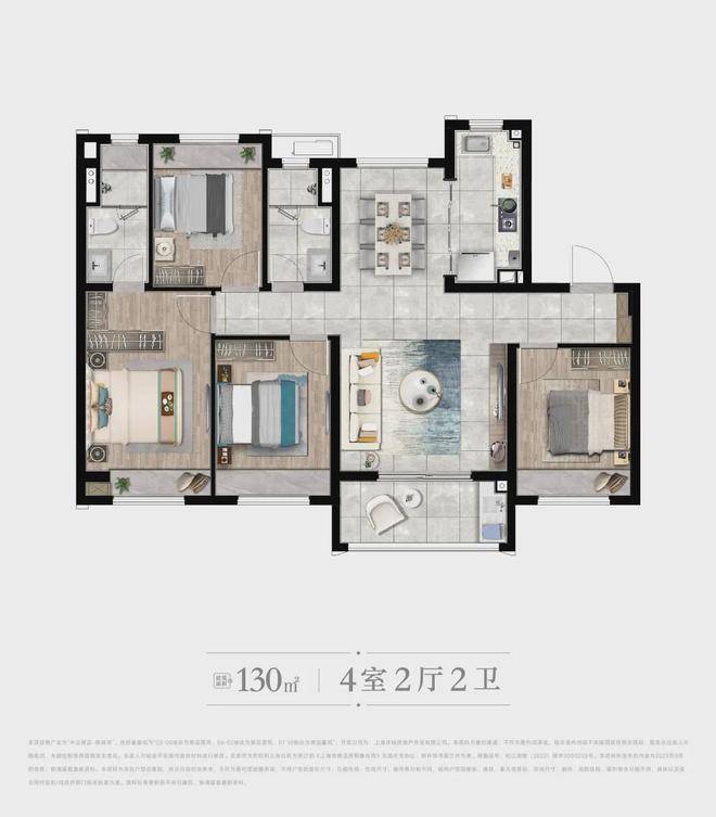 [C户型 ] 建筑面积约130㎡ | 4房2厅2卫