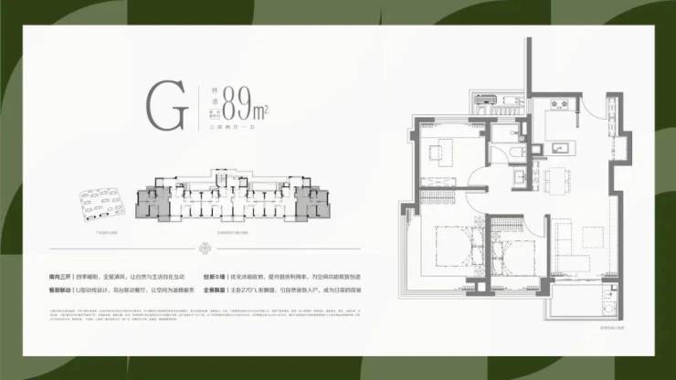 建面约89、103、126m²部分户型设计了270°全景视野的L型飘窗;建面约99㎡户型设计了转角阳台,引园入室,景观视野更震撼,带来IMAX级视觉体验!