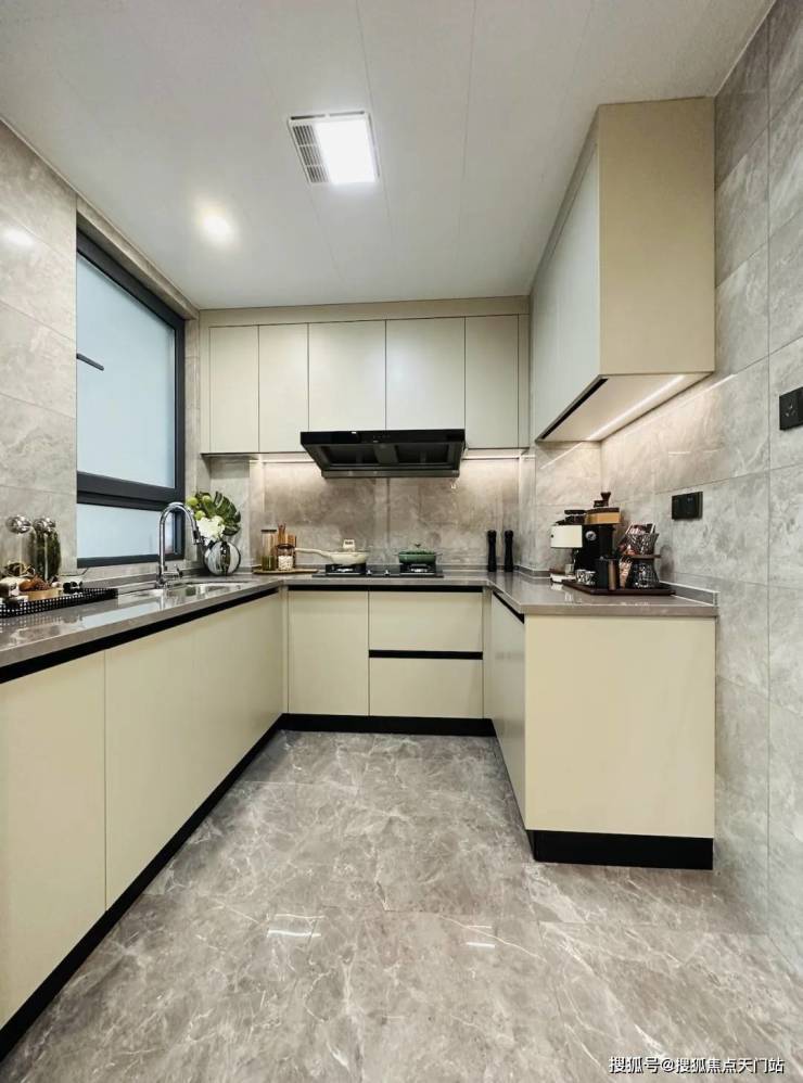 餐客厅一体化的设计, 高效合理地利用了空间,还有助于增进家人间的情感交流。u型厨房的设计,动线合理!
