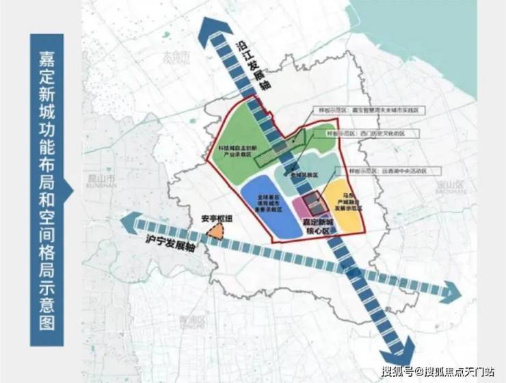 在嘉定构建“一核一枢纽、两轴四片区”的新格局中,安亭枢纽,同时占据了 枢纽和沪宁发展轴