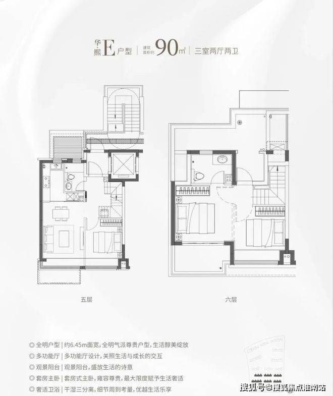这些叠墅分为六层叠加和四层叠加两种类型,其中建面仅约90平方米的E户型,面宽约6.45米,上下动静分离,适合预算有限但又想体验墅居生活的购房者。