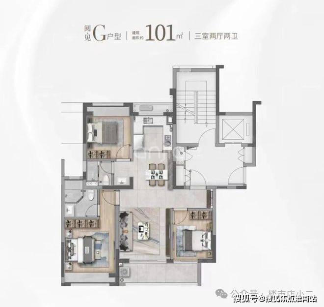 特别值得一提的是建面约101平方米的户型,总价区间为430万到490万元。这个户型的南向面宽做到了约9.7米,观景阳台贯穿客厅和次卧,形成灵活的多功能空间。打完折总价预计350万左右起