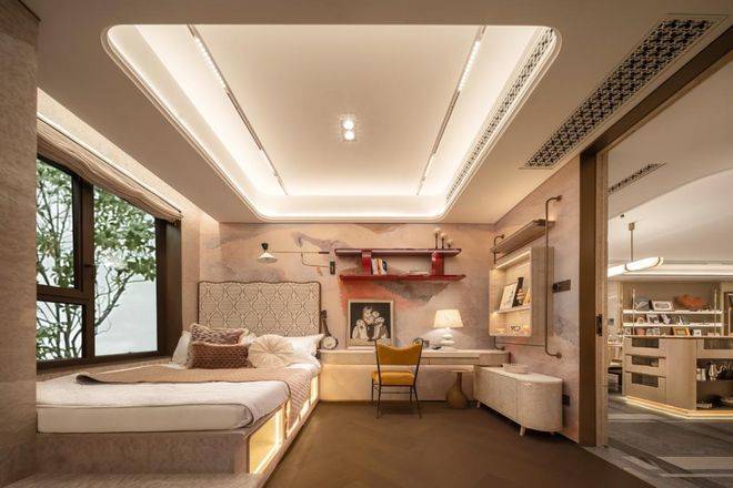 主卧与书房,均以270°环幕视野直面城市。清晨醒来,陆家嘴三件套在晨光中渐次清晰;夜幕降临,黄金S湾的波光与万家灯火交织成一幅流动的画卷。
