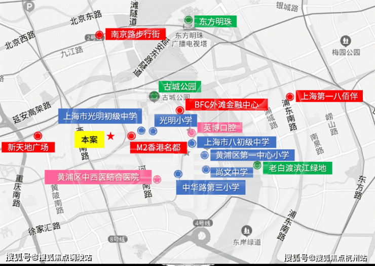 本案地处上海核心风貌区板块第二象限, 约1km范围内有豫园、文庙、新天地等城市坐标 ,融汇东西文化,是上海最早集商贸、金融、文化于一体的政治、经济、文化中心。