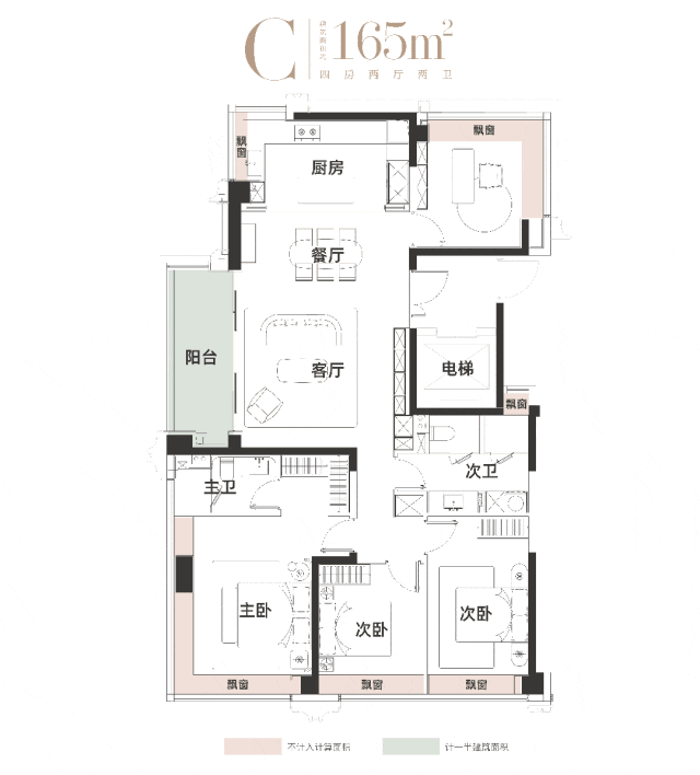 建面约165㎡则进阶诠释全景生活,坐拥270°无遮挡城市视野,更引入次卫四分离体系,通过淋浴、如厕、洗漱、家政的独立动线设计,从容应对早高峰,勾勒新生代家庭的日常温度。