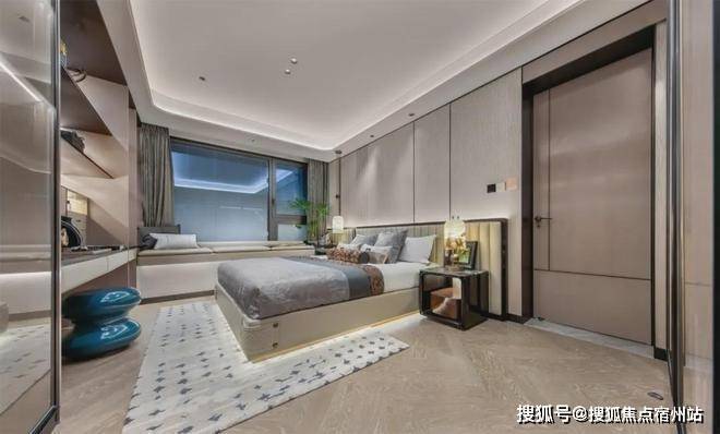 主卧套房设计,贯穿南北,自带卫生间和衣帽间,还有270°转角飘窗,舒适度和私密性双爆表!