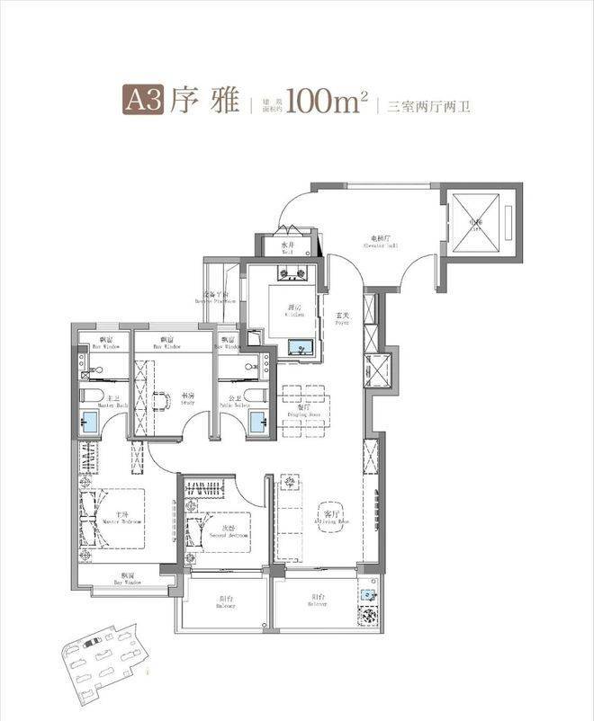 这是百平米3房那么多年一直无法解决的通病,但招商序的百平米3房却截然不同,TA凭借着3阳台的设计,给到客户一个真正的三房户型: