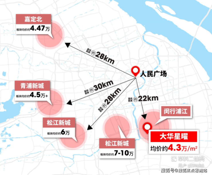 首先,地段方面。放眼整个闵行,4字头单价的新盘只有大华星曜。如果再把目光聚焦到五大新城,大家都知道近期要上市33个新盘,其中嘉定、青浦的楼盘普遍要卖到4.5万/㎡以上,松江新城的价格更是达到了6万均价。而从近些年的兑现能力,释放的势能看,闵行明显要强于嘉青松。而且从离市区的距离看,也是浦江更近。所以,这片区域不受限价影响的二手次新房,如今都已步入6万+的时代。