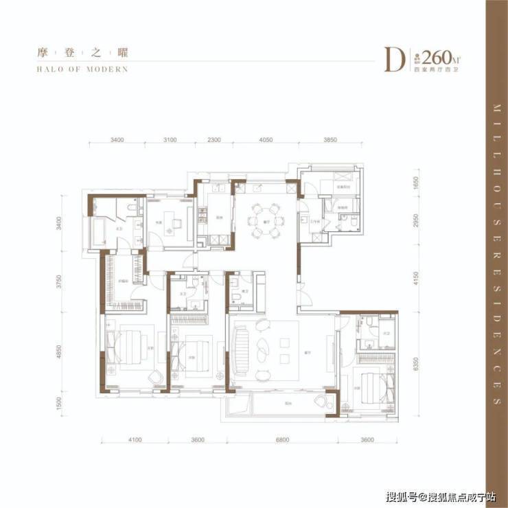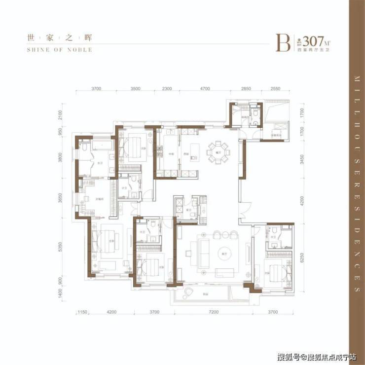 307㎡户型为四房两厅五卫的奢阔四室全套房设计!入户方式为独立户门厅设计,入门厅的面积已足足达到一个近房间大小,既尊显业主身份又增加了入户的尊贵仪式感!