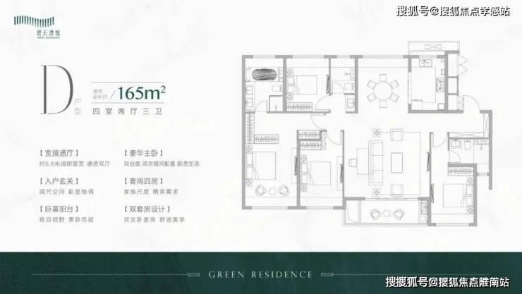 建面约165㎡4房为社区内的大户型,主要位于本次推出的楼王位置, 四开间朝南、南向双套房,主卫竟然还是 双台盆设计,妥妥豪宅配置。