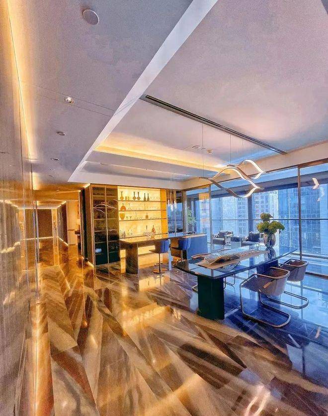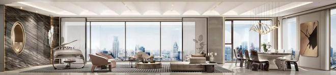 户型设计:主力户型为433-434㎡和580㎡,全部采用套房设计,层高达3.6米,配备全景玻璃幕墙和电动移门。