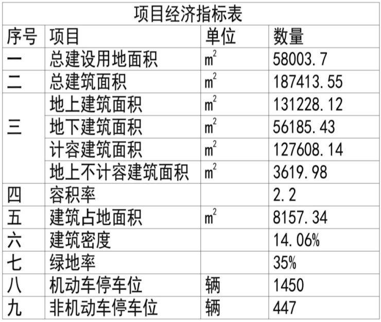 主要经济技术指标详见下表: