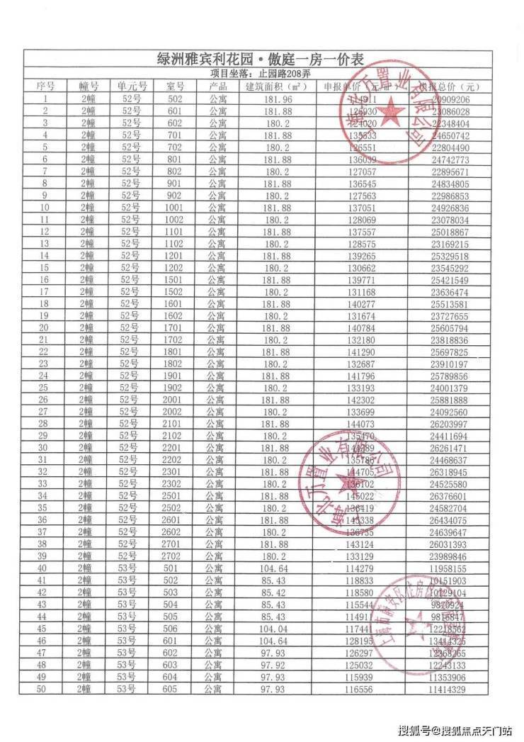 一房一价表发布