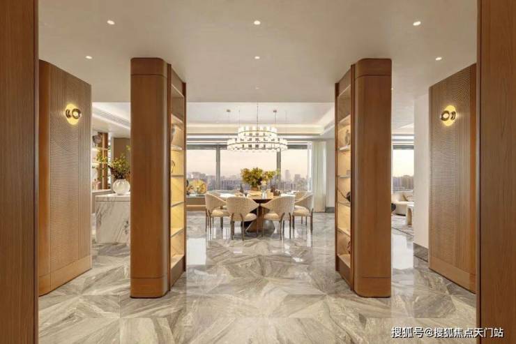 万科中興傲舍凝聚72种高端豪宅都难得一见的奢材,如皇家白奢石、Prada绿皮革面奢石、砖纹定制铝板等等,每一处细节都透露出精致与考究。