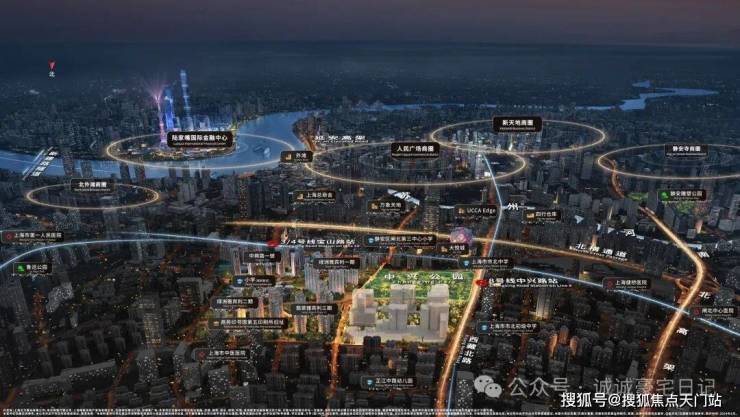8号线中兴路、3/4号线宝山路站;北横通道、南北高架、内环高架环伺。