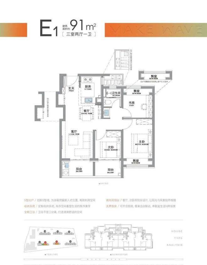 “南向双阳台+南北双飘窗”,构筑真3房户型!