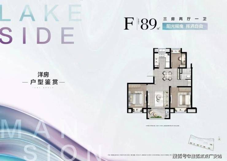 洋房有两个面积段:约89㎡三房一卫和约94㎡三房二卫。