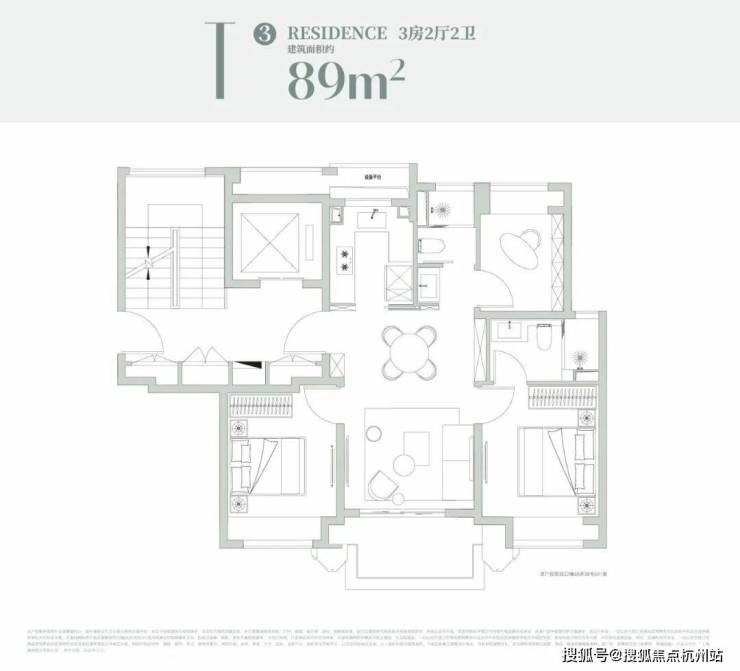建面约89m²3房2厅2卫