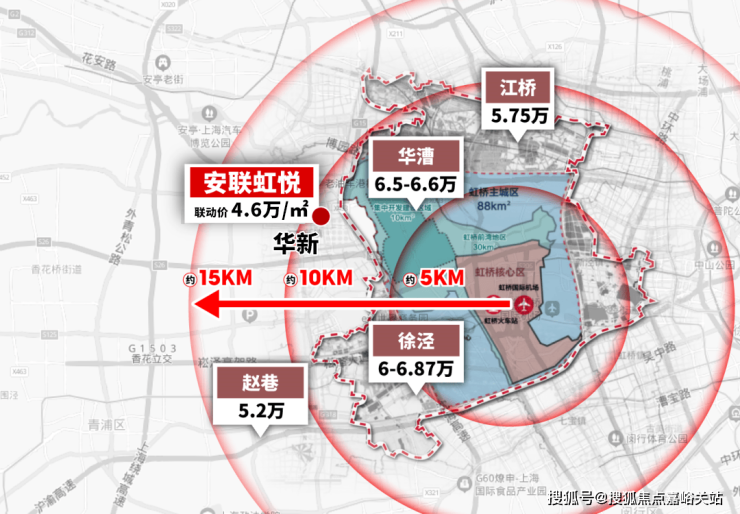 但与此同时,相较于大虹桥其他板块的价格,华新低了近2万元/㎡,如果是100㎡的户型,就要省下近200万元,这对于一个准备在上海上车的家庭来