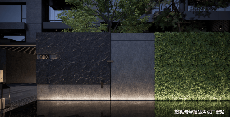 中灰色石材的厚重感,深灰色铝板的舒展度,“安缦金”高奢质感勾勒边框,与蓝眼睛光面石砖、冰花蓝光面石材的交织下,呈现出“天光云影”的意境。