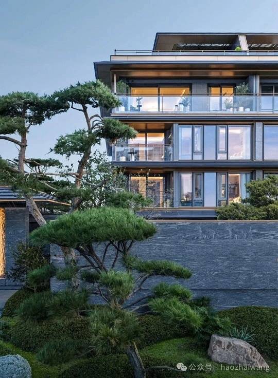 项目建筑设计融合了现代建筑美学与东方园林意境,高层大面积采用玻璃+铝板,极高的窗墙比将天光云影尽纳其中,270°转角窗带来全景舱式的奢阔视野。叠拼则通过露台、院子等设计,提供了丰富的附赠空间。社区内规划有约1100㎡多功能架空层和下沉式会所集群,涵盖恒温泳池、健身空间、书吧茶室等功能区。