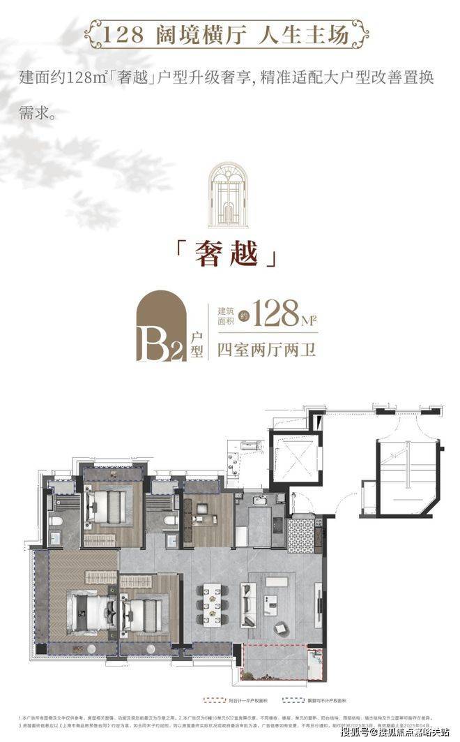 建面约128m「奢越」户型升级奢享,精准适配大户型改善置换需求。