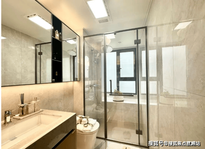 主次卫均配置了摩恩台盆龙头和毛巾架、科勒台下盆、恒温花洒和智能马桶(主卫智能马桶,次卫轻智能)