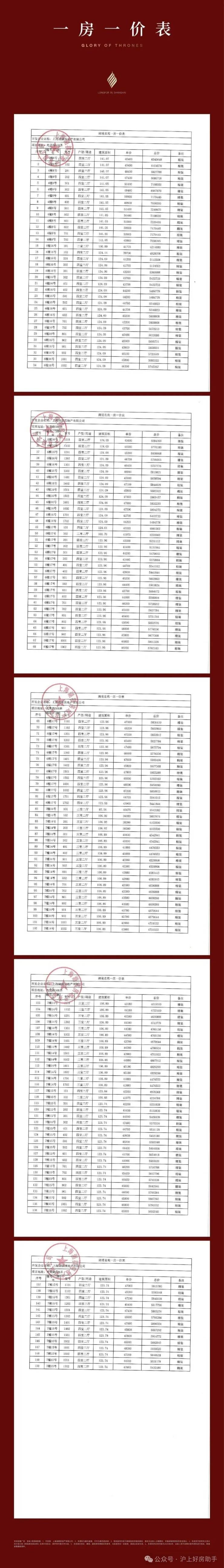 项目一房一价表: