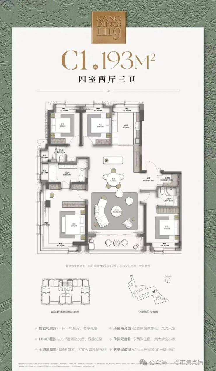 193㎡户型完全就是豪宅的大尺度!保守的说,可以跟市面上几乎所有230+㎡户型对标!目前193户型已售罄,还有少量177-183-238户型可选