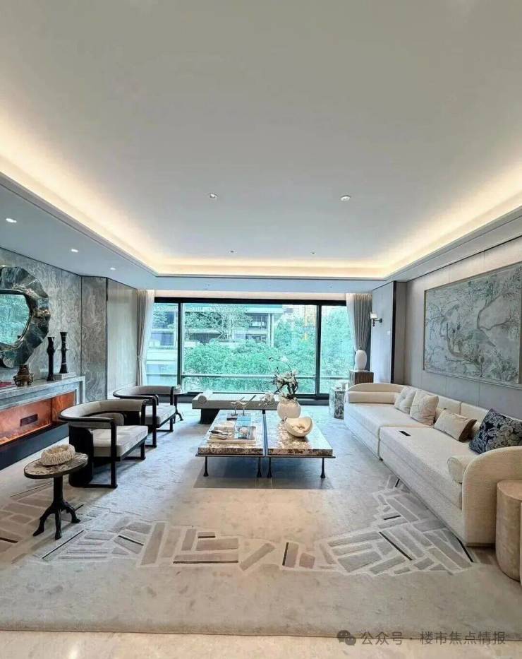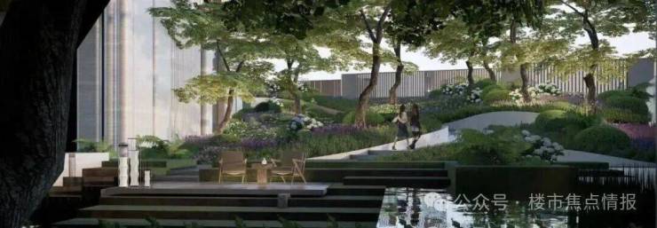 同时也得益于两个地块融合在一起形成了完整地块,项目打造了约160米超长中轴,约4000㎡中轴景观,约700㎡落玉水院、下沉庭院以及私属入户花园。