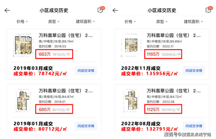 以张江万科翡翠公园为例,2019年二手房成交价为7.87-8.07万/㎡,2022年最新成交价已经涨至13.27-13.59万/㎡!