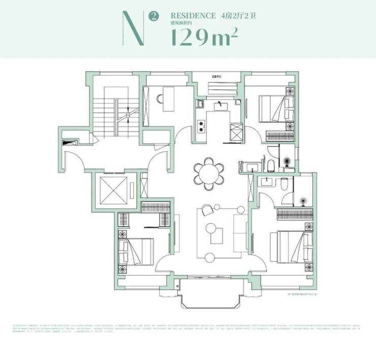 这样一来,便孕育出远比普通项目丰富、多元的户型谱系,以率先亮相的建面约129㎡四房户型为例,可窥见项目对生活的深刻理解。