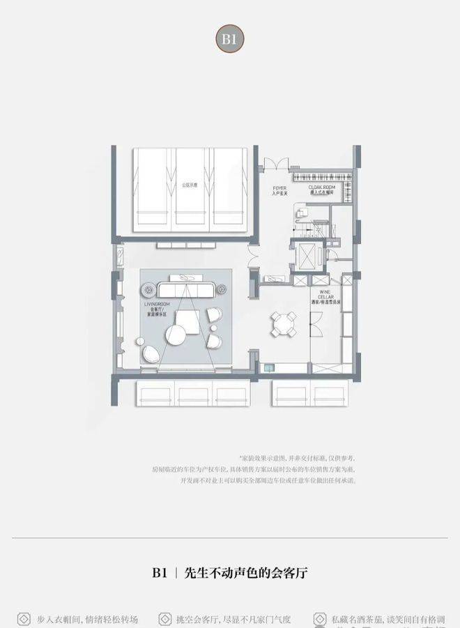 从容抵达步入地下会客厅,转角衣帽间换一身便服,轻松切换身份情绪